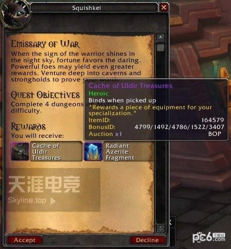 这个任务很简单,完成史诗地下城,或者是大秘境史诗+地下城都可以。也算是送了个370低保的装备。