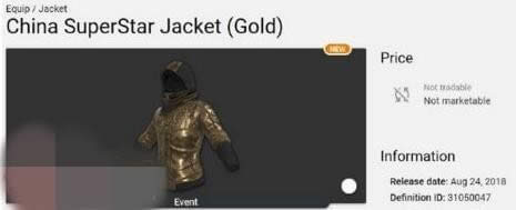 [摘要]绝地求生中国超级巨星夹克怎么获得?绝地求生近期曝光了两个新外观超级巨星夹克,那么怎么才能得到呢?还不清楚的玩家和小编一起来看看吧。 金色中国超级巨星夹克 金色中国超级巨星夹克以金色为主,帽子和袖...