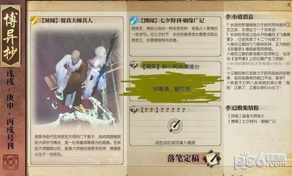 接受任务 博异抄·日刊 后,出现4个或则3个随机任务(攻略作于七夕活动期间,有个七夕特别刊物的报道任务,所以不知道没活动的时候是否还是4个)