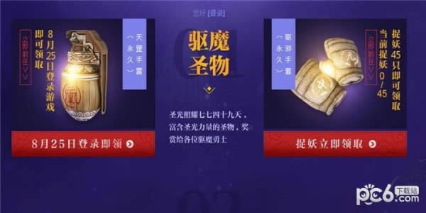 1.前往各个区域捉妖,领取永久限定驱魔圣物。 每日最多抓取4只小妖