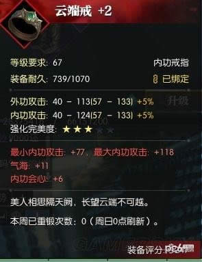 大小攻加气海高数值红色(参考价35W),或换出百炼戒指后用带气海戒指蓝色戒指洗出紫色攻击加气海戒指,20次以下可成,但是看脸,数值低还要用紫装洗,慎用: