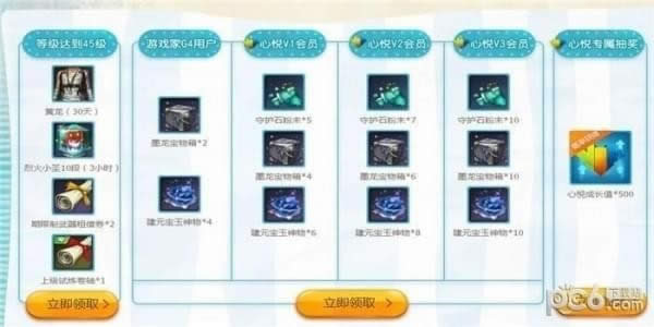 1活动期间,2018年8月6日起首次创建剑灵角色的玩家可以1级、36级、45级领取礼包,游戏家用户可额外领取专属礼包,心悦会员可额外领取专属礼包及抽取心悦成长值。各礼包单Q限1次。