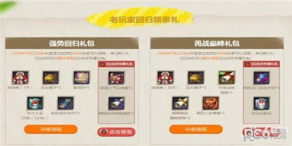 2、活动期间,2018年7月23日后未登录过剑灵的36级玩家可以领取强势回归礼包,到达45级可领取再战巅峰礼包,QQ会员可以额外领取QQ会员专属礼包;所有礼包单Q限1次。