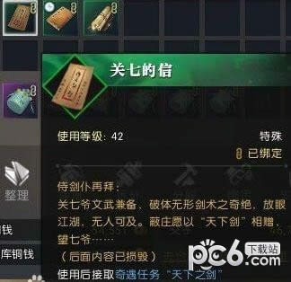打试剑天下副本,路过关七,触发奇遇。打试剑的时候突然出现一个顶着奇遇红叶的关七NPC跟着你然后给了你这个信。