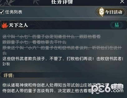 [摘要]逆水寒天下之剑奇遇怎么完成?关七奇遇天下之剑这个任务比较难,很多玩家都不了解触发条件,下面带来逆水寒奇遇天下之剑完成方法,一起来看看吧。逆水寒奇遇天下之剑完成方法前置奇遇,不显示在青崖书里,但是 他...