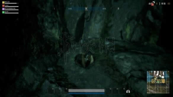 潭底有秘境,按c潜入水底可以进入下图所示洞穴,按空格上升进入洞中。
