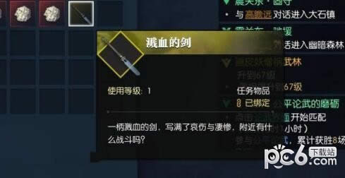 使用等级1,任务物品,一柄溅血的剑,写满了哀伤与凄惨你,附近有什么战斗吗?