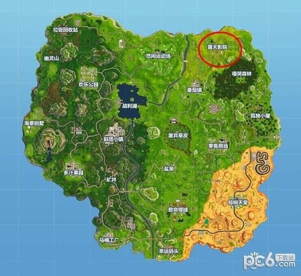 露天影院就是之前的危险卷轴,位于整个地图的右上角。左侧是悠闲运动场,下方是嚎哭森林和番茄镇。由于露天影院较为偏远,如果不是航线经过的话基本没人跳。