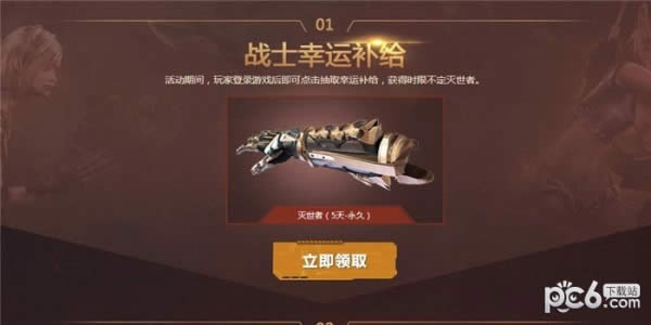 2.玩家登录游戏即可抽取战士补给,可获得5天-永久中间内时限的灭世者道具。