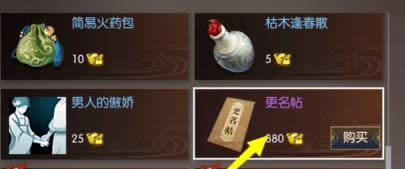 在商城的杂货选项中,选择【琳琅奇货】可以找到更名帖。