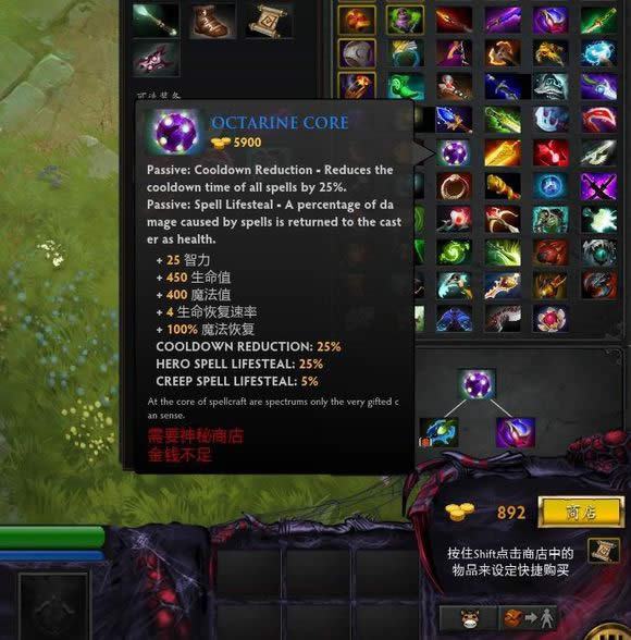 神秘法杖+镇魂石 +25智力+450血+400蓝 +4生命回复+100%回蓝