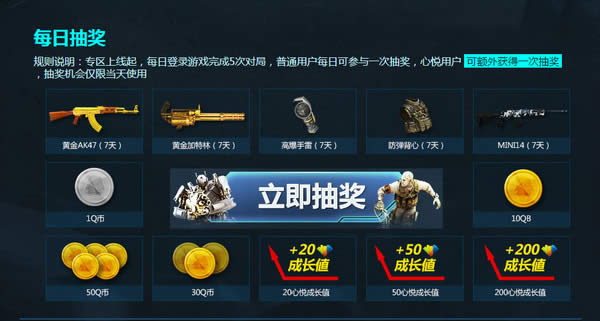 规则说明:专区上线起,每日登录游戏完成5次对局,普通用户每日可参与一次抽奖,心悦用户可额外获得一次抽奖,抽奖机会仅限当天使用
