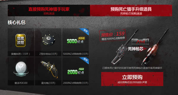 3.死神猎手升级道具-死神枪芯仅在预购期间成功预购可获得核心礼包一份;