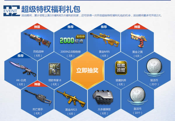 活动期间,累计领取上面3次福利和5次福利的玩家,还可获得一次开启超级特权福利礼包的机会,活动期间最多可开启2次。