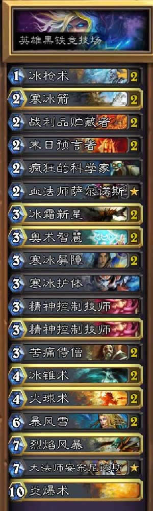 在英雄难度下,BOSS的技能变得不再消耗法力水晶,并且初始便能拥有4点法力水晶。BOSS会从开始就有极强的铺场能力,源源不断的橙卡会造成非常大的压力,因此这里推荐使用冰法来对付这个话痨BOSS。起手寻找奥术智慧和苦痛,因为BOSS有比较高的几率上来能放米尔豪斯,而苦痛在解11同时还能过很多张牌。除此以外,130在这场战斗中可能会给你很大的帮助,合理利用安东尼达斯增加伤害。有一点要注意的是,BOSS一旦铺满场,便没有空余位置上各种令人恐怖的橙卡,谨慎把握遇到的每一个机会都可能让这次过关的概率增加。