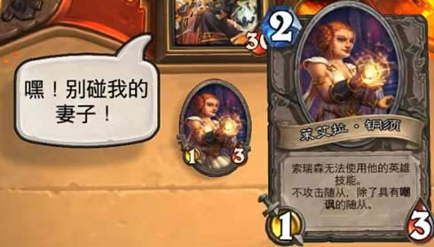 英雄难度与普通难度的区别主要体现在BOSS妻子是3-1身材,更高的攻与更少的血量给了玩家不小压力,并且BOSS还会召唤各种亡语AOE的随从,一旦造成BOSS妻子的死亡并几乎宣告这一盘的结束。经过尝试后,推荐使用这套圣骑士卡组来过关。起手寻找智慧祝福与炼金师,为了保护妻子的血量,优先使用炼金,不行再用谦逊或者城管;智慧祝福直接丢给妻子,你会发现你的手牌每个回合都会有效补充。猫头鹰留给亡语随从,用来避免妻子的死亡。要注意130的时候拉来妻子的话,会被BOSS拿随从解掉,然后你就GG了。(喂!你自己打死的,对我发什么火嘛!)