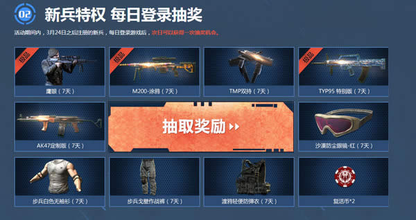 活动期间内,3月24日之后注册的新兵,每日登录游戏后,次日可以获得一次抽奖机会。