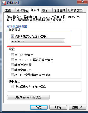 2.选择属性出现如下界面,选择兼容性,勾选以兼容模式运行这个程序,并选择windows7