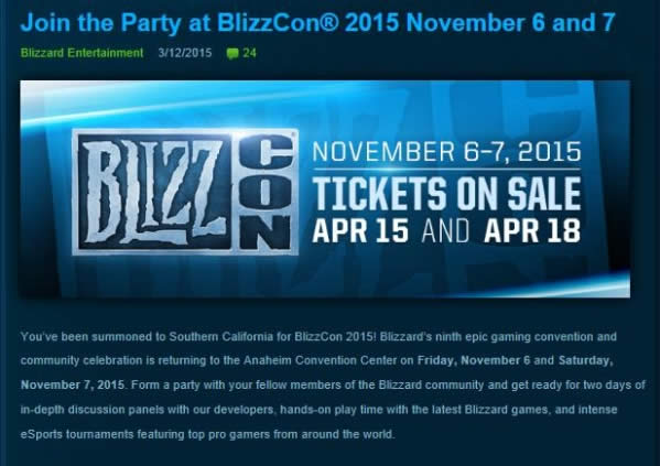 3月13日消息,暴雪官方正式宣布2015年暴雪嘉年华将于11月6日与11月7日在加利福尼亚州安纳海姆会展中心召开,本届嘉年华门票将于北京时间4月16日早上10点和北京时间4月19日凌晨1点于暴雪购票开售,售价199美元,快来看看吧!