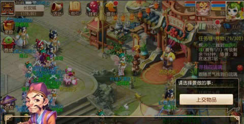 寻物:根据NPC要求上交某种物品,其中包括烹饪、三级药、友好度增加物品、装备、宝石、魔兽要诀、红罗羹、绿芦羹等等。可在接取任务的20分钟内,到与玩家等级相符的地图中挂机战斗,战斗结束后有一定概率能获得这一道具。超过20分钟将无法通过战斗获取道具。另外值得说明的是,部分稀有道具可以在商城摆摊处碰碰运气,看有无玩家出售,当然还可以通过"任性一下"直接跳环。"任性一下"功能将在战斗环节详述。