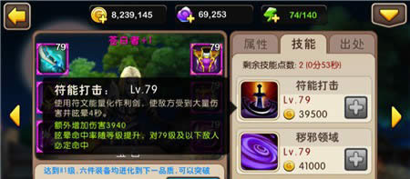 技能一:符能打击,使用符文能量化作利剑,使敌方受到大量伤害并眩晕4秒。