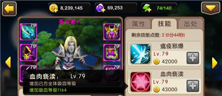 技能四:血肉亵渎,增加己方全体吸血等级。