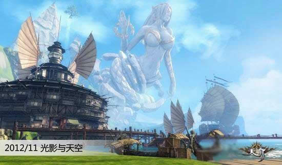以《天谕》中苏澜城和星纪城两座主城为例,这两座主城依山傍水,并通过游戏中的星澜大运河相连,水流最终汇入海洋。这是在现实生活中可以见到的场景,却是第一次出现在网络游戏中。在一款网络游戏中,因为性能问题,很少在主城中使用大量的河流和水体效果,《天谕》的自研BIGBANG引擎有效的解决了这个难题。