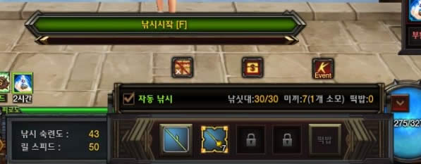 钓鱼时可以看到熟练度。可以自动钓鱼!