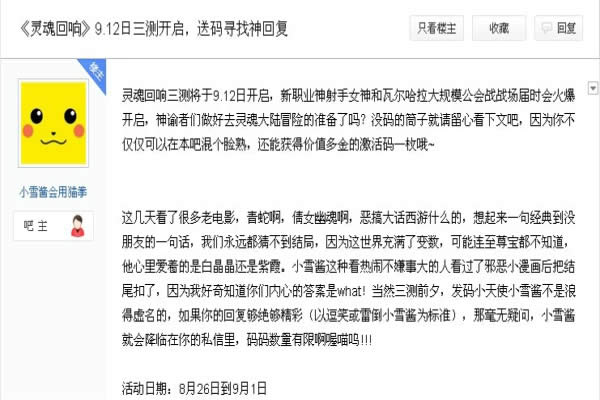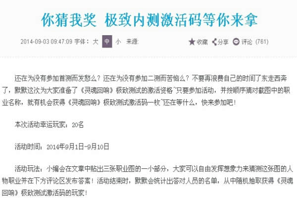 [摘要]灵魂回响9.12日迎来极致内测,灵魂回响激活码怎么获得呢?这是个大问题,灵魂回响激活码领取方法,小编为你解决,下面为大家分享灵魂回响激活码领取方法~方法一:活动地址>>>点击进入方...