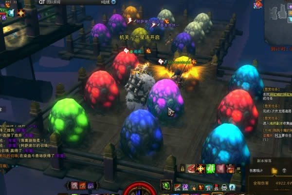 需要有2个颜色的蛋一起击杀后消失。需要在一定时间内完成。(也可以四个人一轮爆发全干掉)