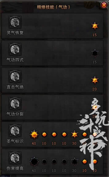 首先我们来看看气功的精修:
