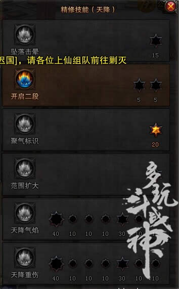 4 范围扩大 ,不解释,其实哪怕是主天降,也不点这个,因为天降掉落是恒定的数,范围扩大后反而不利于输出,具体请可以参考dnf鬼泣墓碑流。