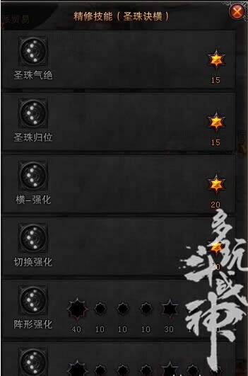 3 横强化 增加攻击的穿透,其实横在我的加点里面就是给小怪补刀的技能,小怪一般都是拉一起群a的,所以这个精修是要点的。