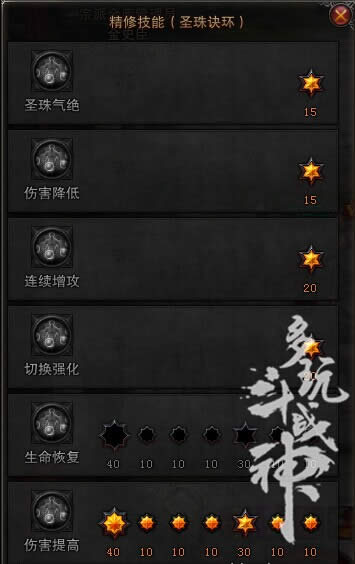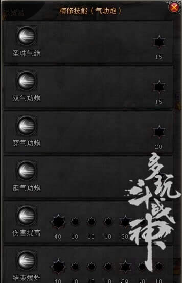 2 气功四式,气功开启第四式,技能具有传统增伤效果,渣精修,一般没人会气功打到四式以上。