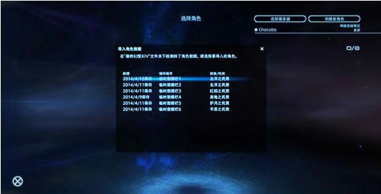 PS-1:如果你是首次创建人物,那么在CG动画后,会直接进入种族选择界面,此时,请点击左下角的×符号放弃创建人物,就能返回图三的界面,点击“创建新角色”进行数据导入。