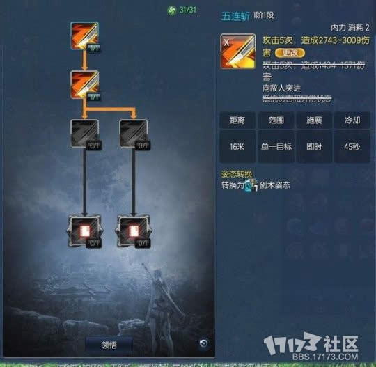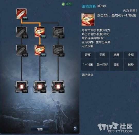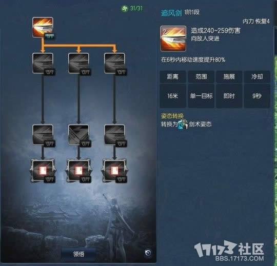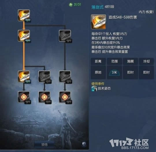 而且就算出了落剑式的秘籍,我也建议点最左边一排,毕竟新版本,灵剑有50%以上的时间在拔刀状态,所以断水流已经不是最主要的输出手段了。