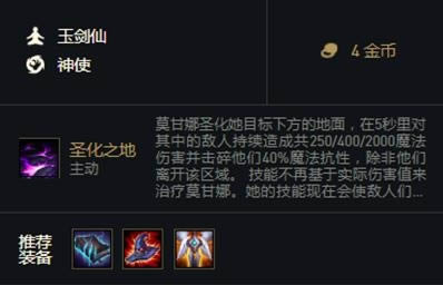 莫甘娜在新版本为玉剑仙和神使阵容的主力输出,