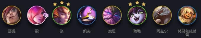 洛释放技能时会突进到离自身最远的敌人身边,因此经常会进入敌人群中,日炎可以持续灼烧周围的敌人,给敌人施加debuff的同时强化自身输出。反甲、狂徒可以提高自身坦度,确保自身不会被集火秒杀。狂徒可以替换成火炮,提高洛的输出效率。
