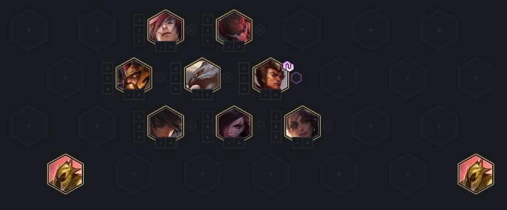 阵容玩法:这个新版三国也是非常给力的阵容,初期核心C位仍为卡特。后期C位由莎弥拉担当,能够打出阵容的收割效果,阵容坦度和伤害都是非常高的。前期过度需要天选的三国英雄,用简单的三国体系进行过渡,5-6人口即可上至6三国羁绊,7人口上圣盾和刺客来提升阵容质量。然后卡利息D三国英雄,保证有2-3个三星英雄即可上8人口找到沙皇和莎弥拉即可组成成型阵容,最后还可补充腕豪等五费英雄作为提升。