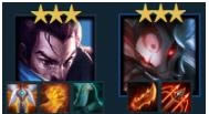 前期可用四决斗搭配上两玉剑来进行稳定过渡,亚索装备开局就着手,拿到直接给,前排由武器和剑姬来充当,亚索和滑板鞋在一旁负责输出。中期在此基础上增加六决斗羁绊,让阵容的输出能力大涨,稳定血量可适当D卡来拿三星亚索,随后将人口升到八拿到永恩彻底成型。