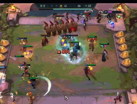亚索和永恩带有两人羁绊和其他英雄分开站位,永恩最好对准敌方人多的位置容易触发技能效果,亚索则负责在一侧稳定输出,滑板鞋和风女放在后排角落容易打收割。