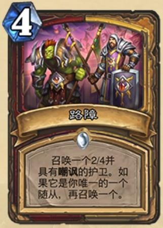 效果:召唤一个2/4并具有嘲讽的护卫。如果他是你唯一个一个随从,再召唤一个