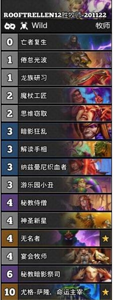 【4】【白】宴会牧师、【6】【紫】秘教暗影祭司、【10】【橙】尤格-萨隆,命运主宰