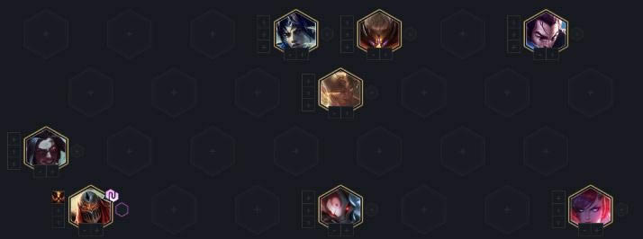 注意:在盲僧没出来之前,用剑姬来顶替位置,所以剑姬在前期只要二星即可,不用去拉强度。9人口状态下,还能再多上一个永恩,凑出双浪人的同时还能添加一个高输出五费卡战力。