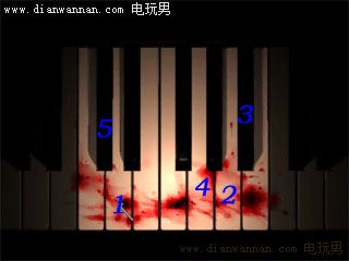 无声之鸟,所以就是要我们按下无声的琴键。这样应首先确定钢琴有哪几个键是不发声的,这其中有3个白键和2个黑键,诗中出现的5只鸟只有Raven(3)和Crow(5)是黑色,这样先把2个黑键分配给他们(其他几只或许也可以是黑色,但已经没有更多黑键可分配了),不过具体位置还需待定。根据诗的前2句中Dove(2)飞过并远离Pelican(1)的信息,可分别将最右一白键和最左一白键分配出去,同时根据第3句,Raven(3)的位置也定了下来,Crow(5)就选另一个黑键。最后根据第4句,Swan(4)紧邻着一只鸟,正好还剩一个白键可供分配。按这个思路整理下来,具体按键法见下图: