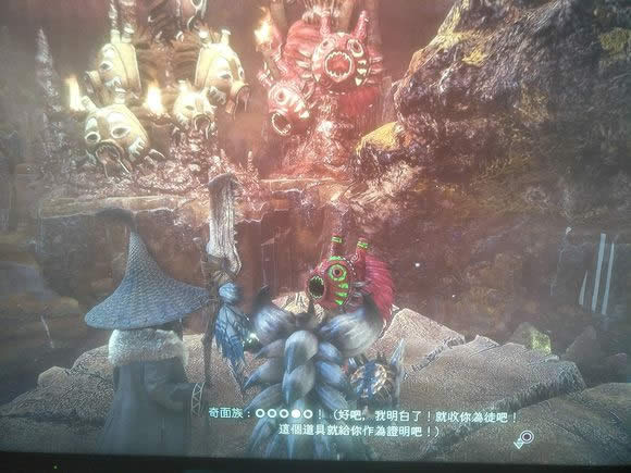 两个任务组成 第一个是10个奇面族语言痕迹 第二个在龙结晶地 等晚上然后进去穿衣服 到洞穴里对话