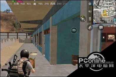 餐馆是成凹字形,所以在窗口能够很清楚看到对面的情况。如果我们手上有瞄具就可以找机会偷袭对手,没有瞄具就只能等对手过来。不管对手从空地穿过来还是沿着走廊搜都有一段距离没有掩护,因此我们可以在这段距离偷袭。