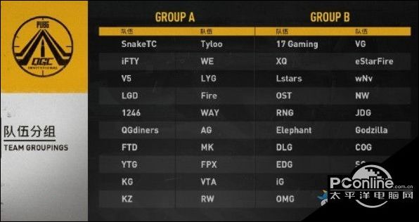 A组:SnakeTC、iFTY、V5、LGD、1246、QG、FTD、YTG、KG、KZ