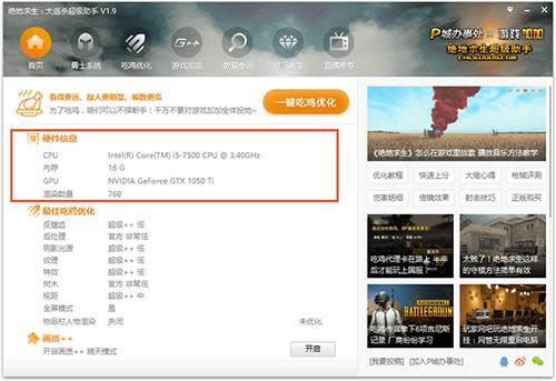 成功进入超级助手后,助手会自动读取玩家的电脑配置(CPU,内存显卡等数据),如图1所示。