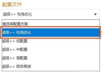 这是为了图2处做准备,点击“请选择配置方案”的下拉菜单,会出现四种配置方案,分别为“吃鸡优化”“低配置”“中配置”“高配置”与“极高画质”。